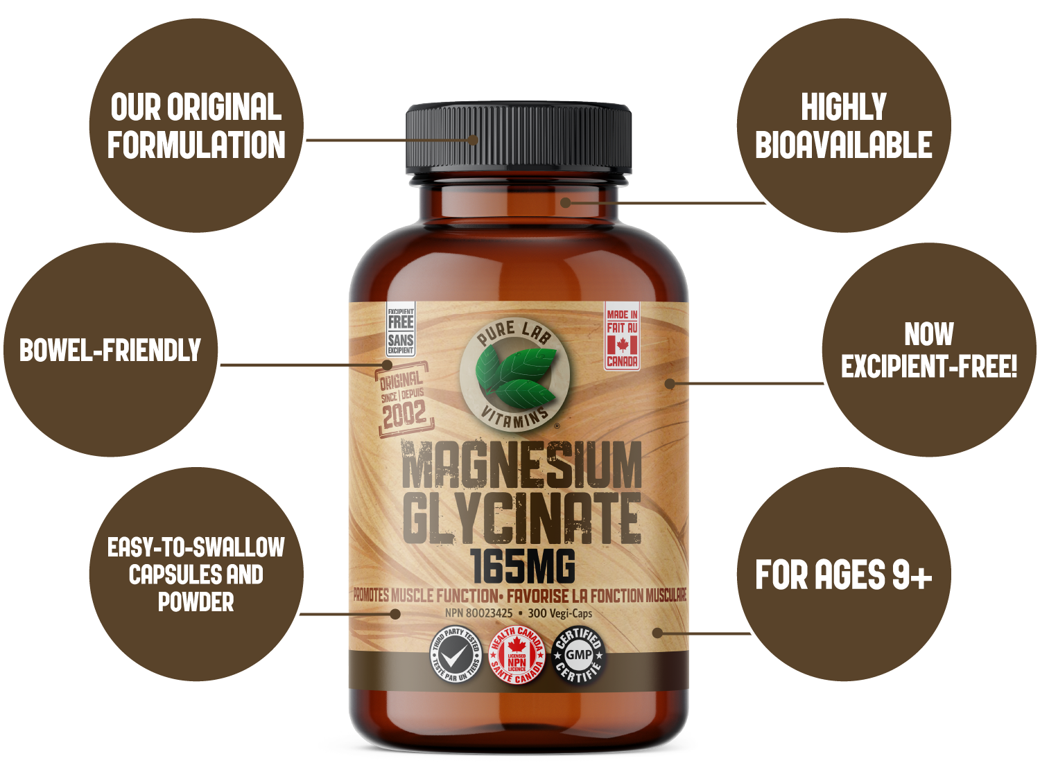 For over two decades, our original Magnesium Glycinate 165 mg formulation has been Canada’s go-to for highly absorbable, bowel-friendly magnesium support. With a track record of excellence since 2002, this trusted formula balances strength and gentleness, supporting everything from muscle recovery and stress management to better sleep and pain relief.